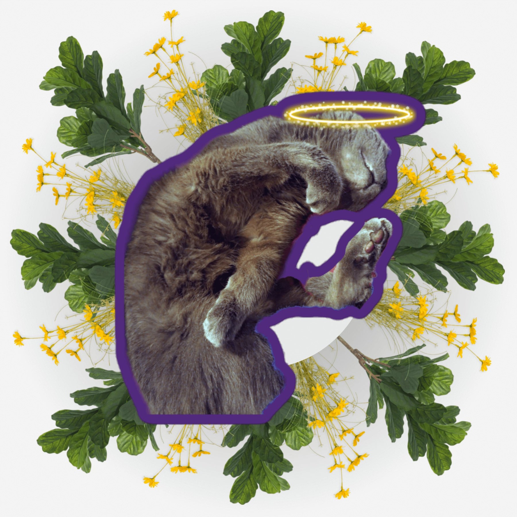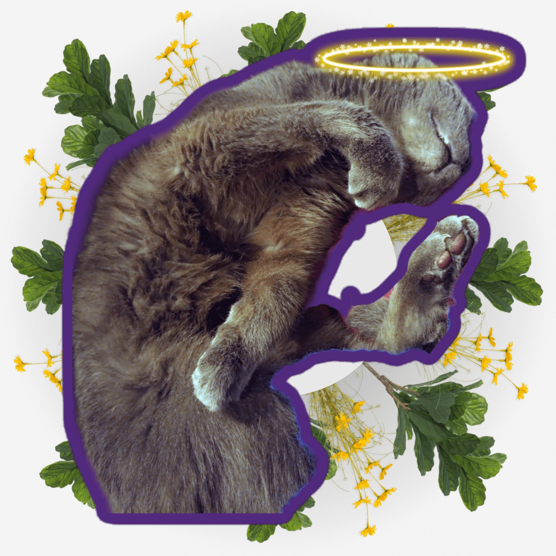 Sleeping Yoga Ver. 2 sticker featuring a cat with a halo surrounded by flowers.