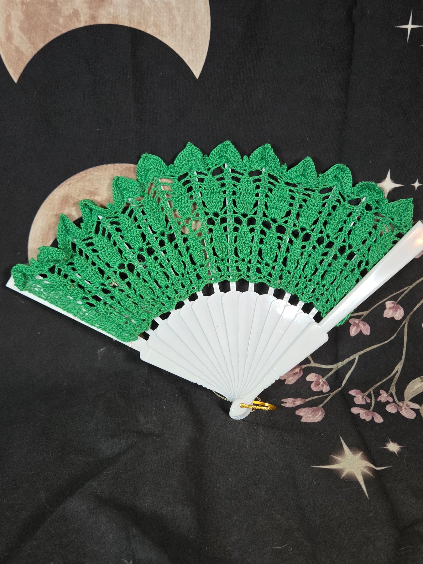 There are 5 different styles, each crocheted from a thread size yarn, and still extremely light weight. Although they won’t fold all the way for due to the crochet part being thicker than paper, it is still functional while looking gorgeous (just like you).